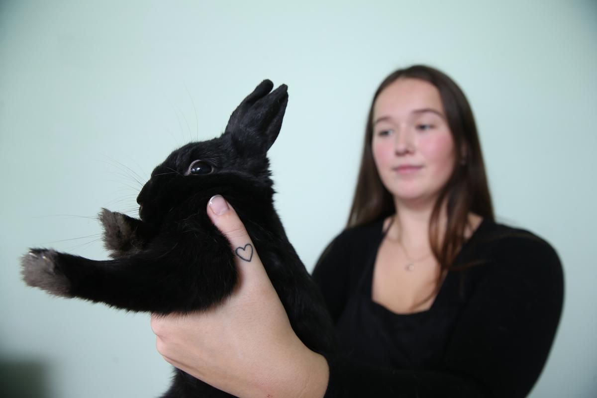 A young Scarborough woman grooms rabbits at her Funny Bunny Services