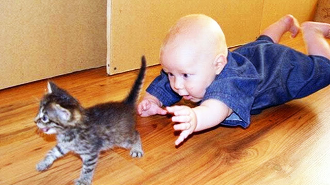 Baby and Cats Playing Together – Funny Baby and Pets Moments