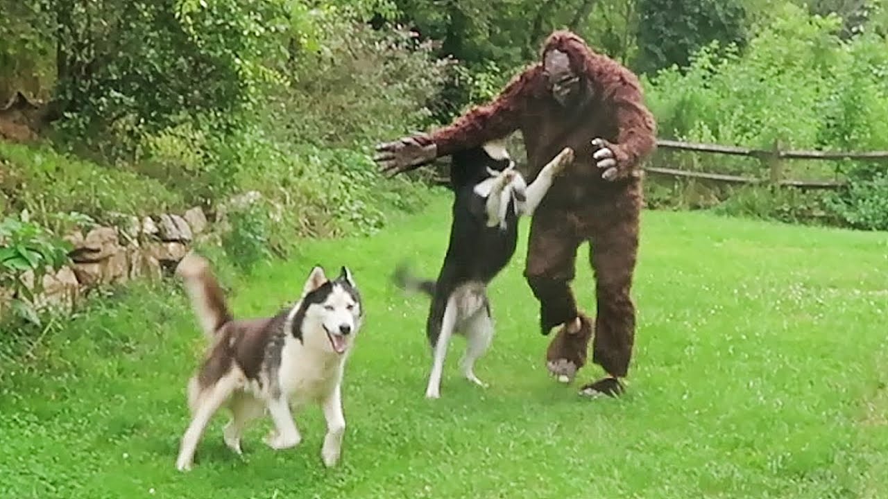 Huskies vs Bigfoot Prank – Funny Dogs